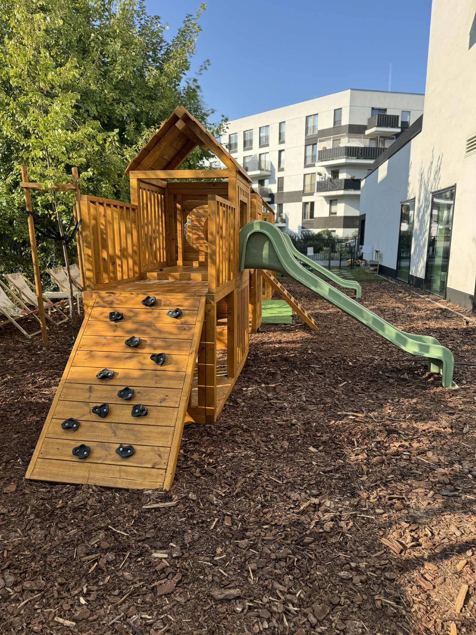 Nasz żłobek oraz przedszkole usytuowane jest na parterze pietrowego budynku mieszkalnego w spokojnej okolicy. Wiemy, że ruch to zdrowie, dlatego do dyspozycji dzieci, oprócz pięciu przestronnych i staranie zaprojektowanych sal dydaktycznych (2 sale żłobkowe, 3 sale przedszkolne) oddajemy również ogródek, w którym maluchy będą mogły spędzać aktywnie czas na świeżym powietrzu.